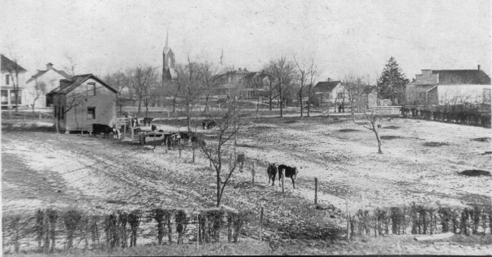 barn in foreground (left) John Becker's General Merchandise Store on the far right at the south
